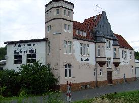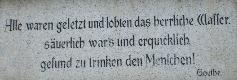 Altes Gebäude der Biskirchener Heilquelle mit einem Spruch Goehtes über dem Hauseingang!
