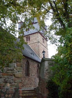 Kirche in Frohnhausen an der Lahn Schloss Friedelhausen oberhalb der Lahn