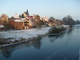 die Lahn bei Dorlar 2008 im Winter Das Roemerlager (mit Roemer Standbild) in Wldgirmes