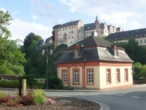 Schloss Weilburg von der Lahn her gesehen Felsen über der Lahn bei Weilburg